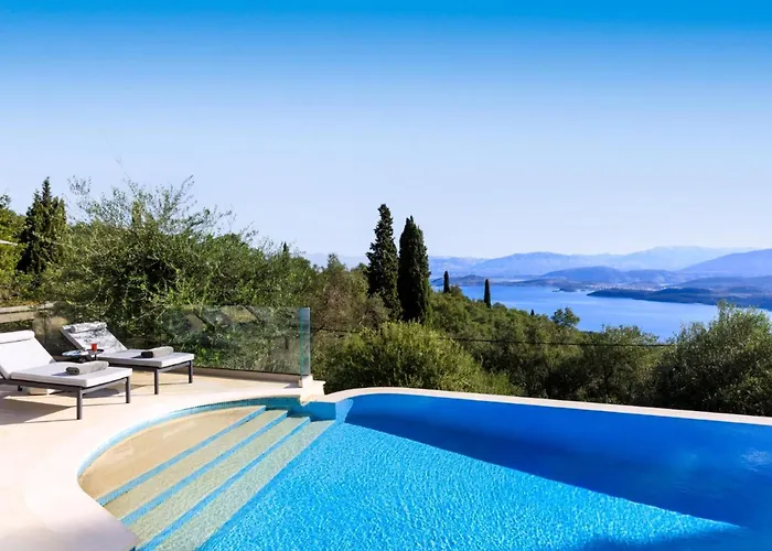 The villa is about 10 minutes by car from the Kerasia beach, and the Kassiopi Castle is approximately 15 minutes away by car.